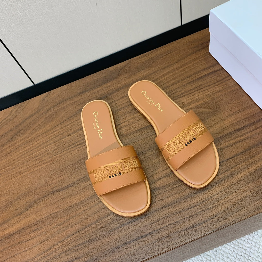 DIOR 25S DWAY SLIDE IN LIGHT BROWN CALFSKIN