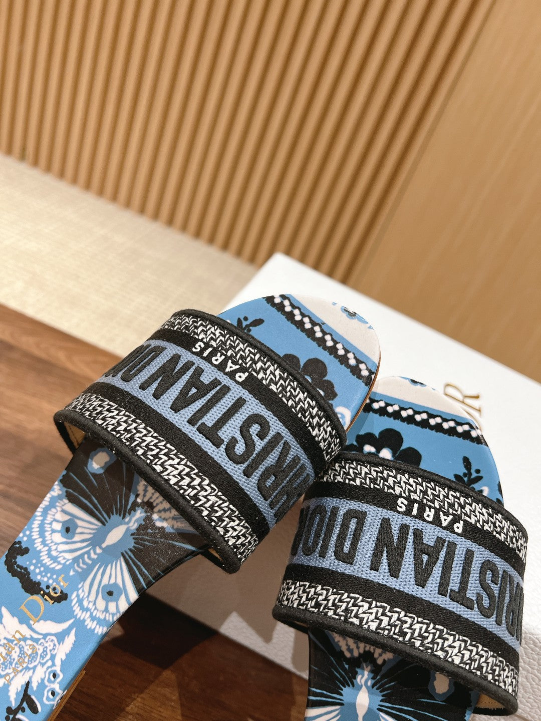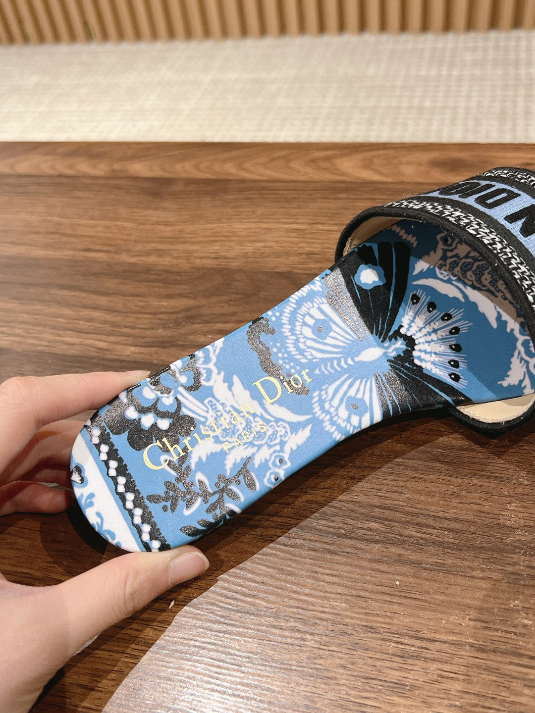 DIOR 26S SLIDE SANDALS IN BLUE FLORAL PRINT LOGO STRAP