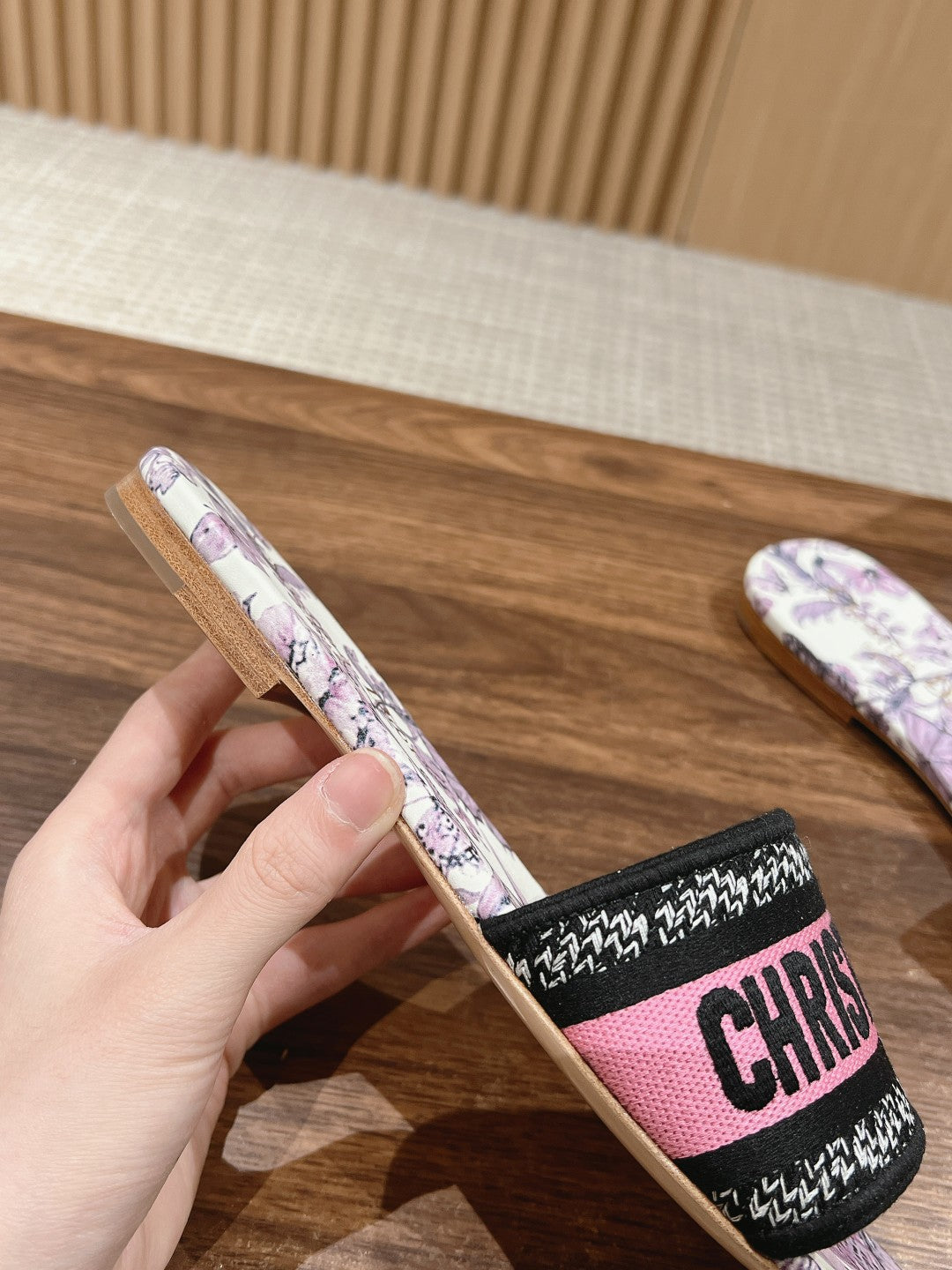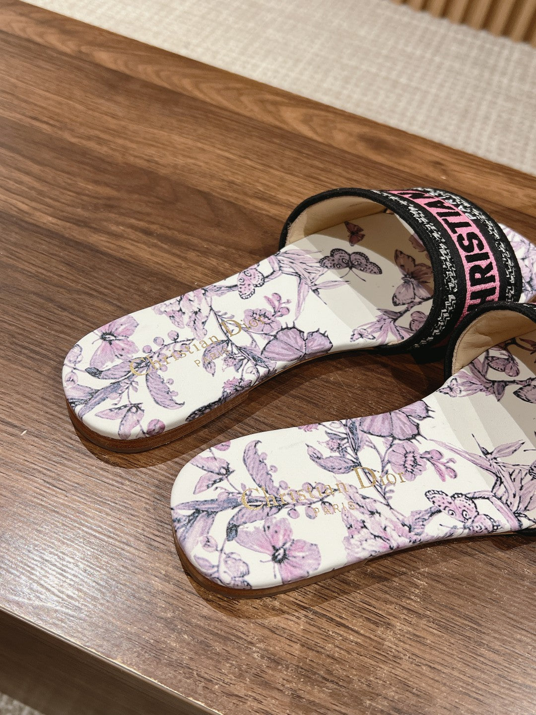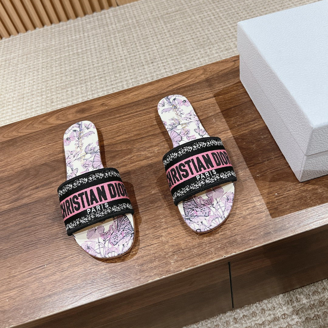 DIOR 26S SLIDE SANDALS IN PINK FLORAL PRINT LOGO STRAP
