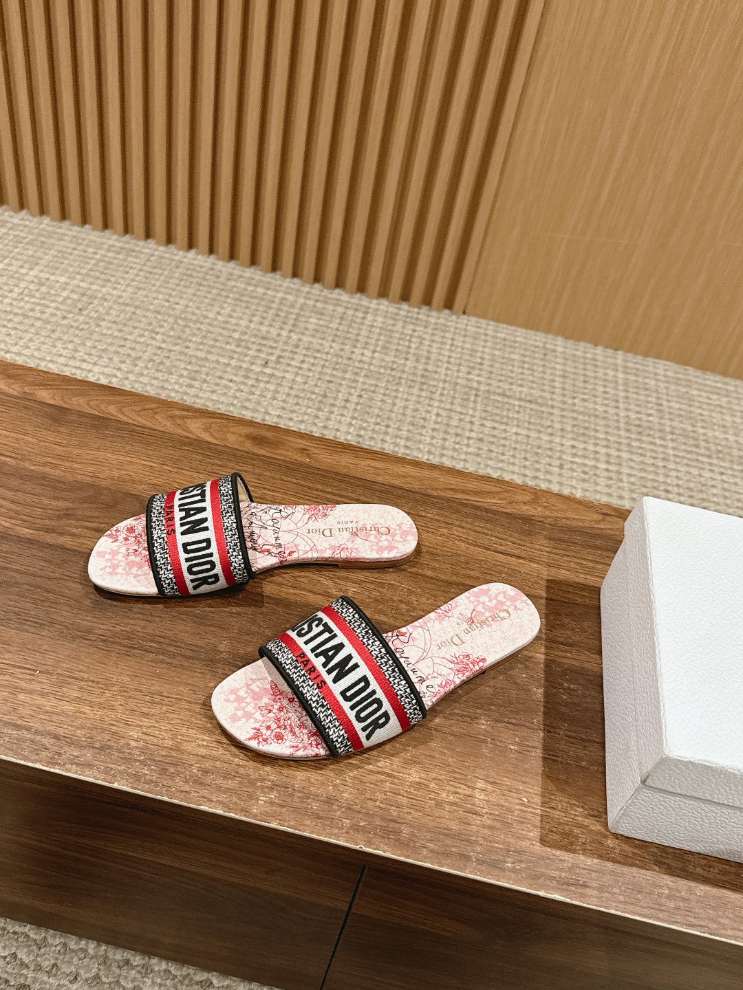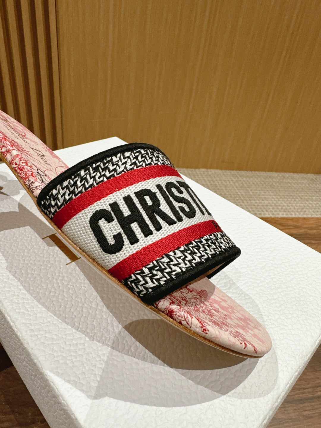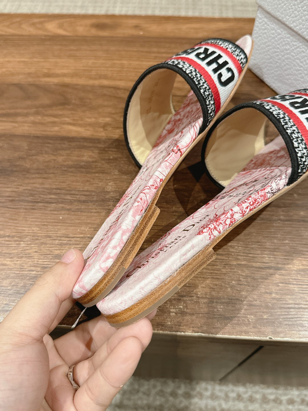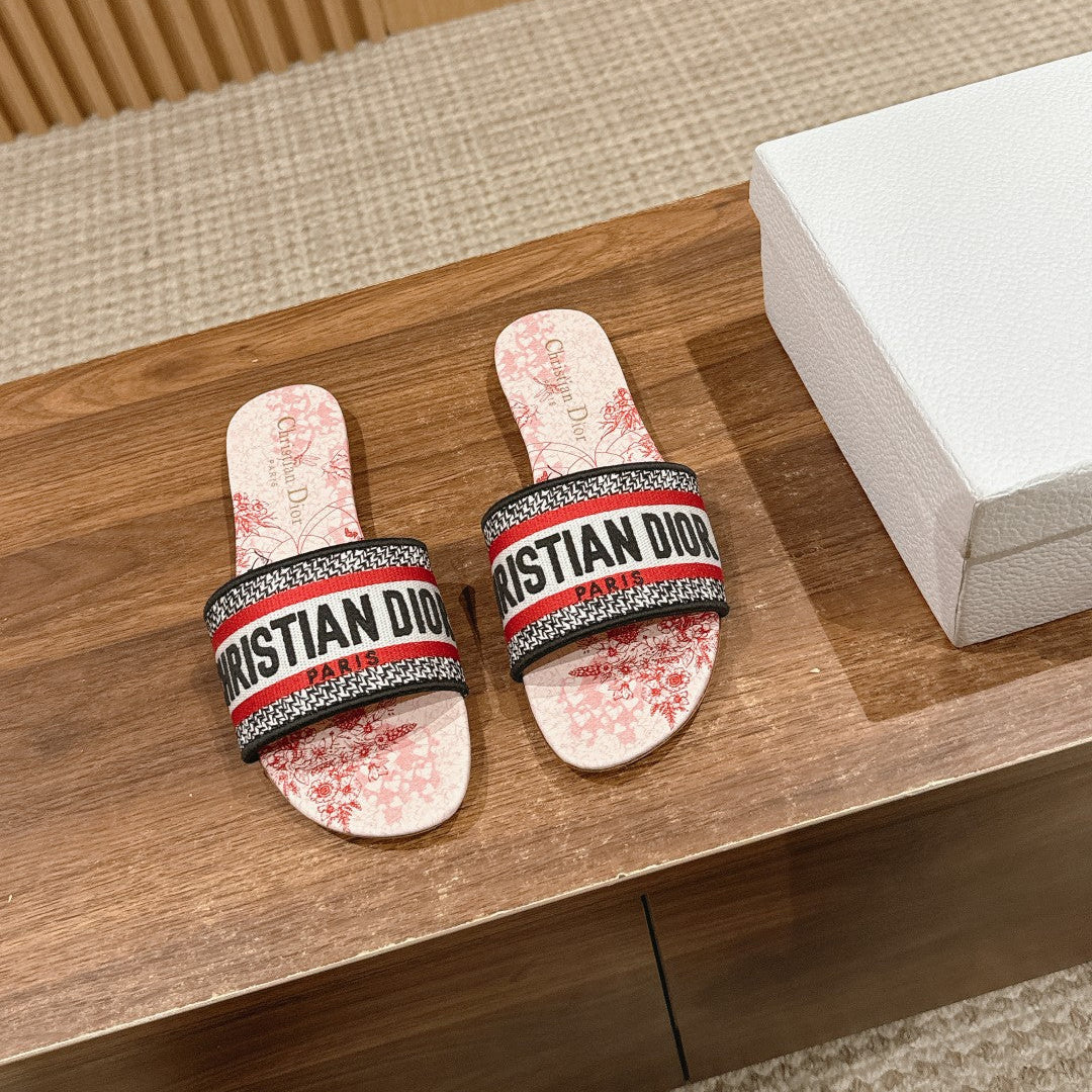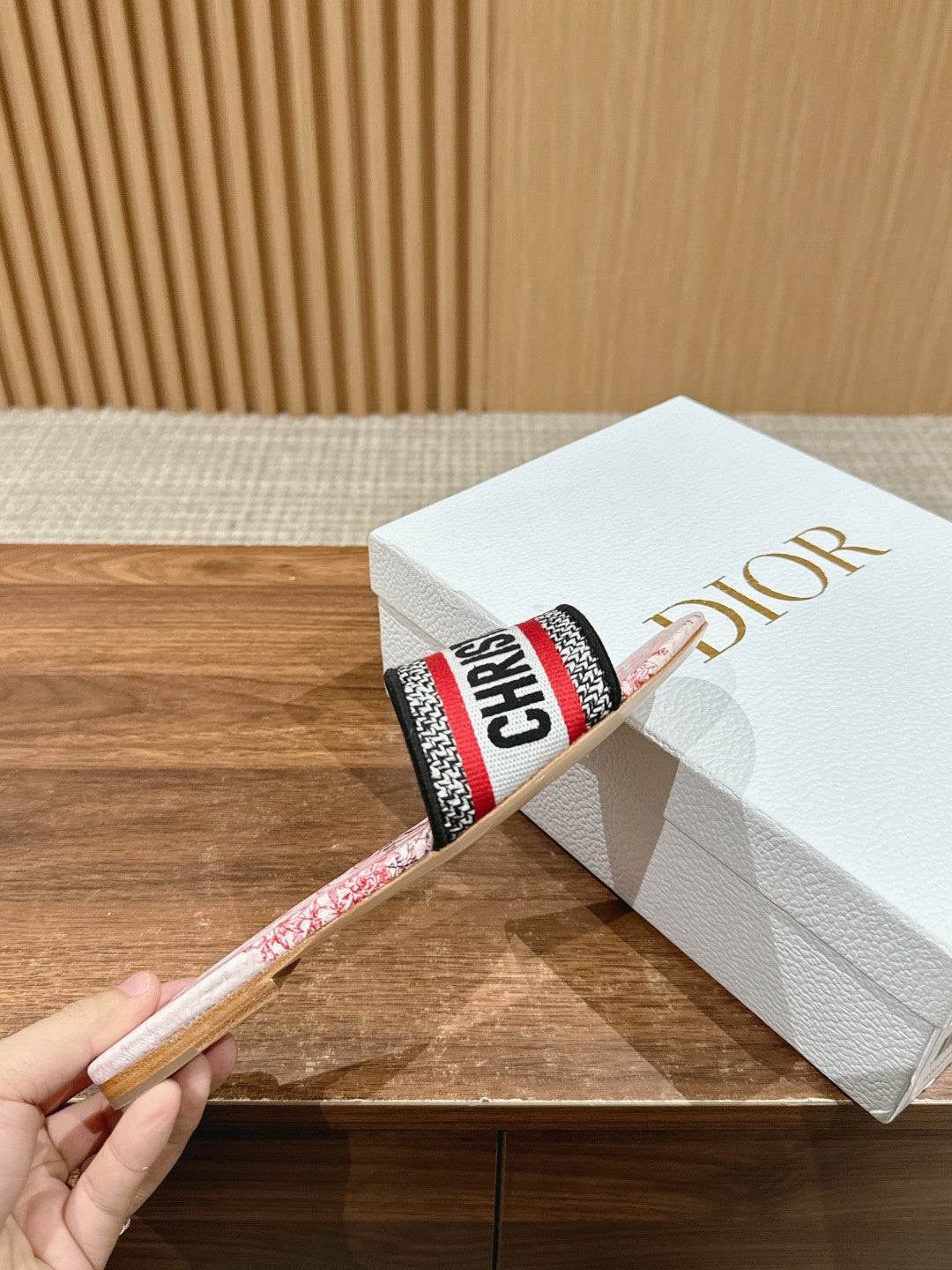 DIOR 26S SLIDE SANDALS IN RED TOILE PRINT LOGO STRAP